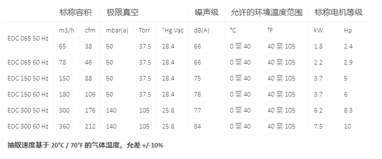 EDC 系列維護需求低,配備長壽命軸承和密封件,帶獨立的隔離抽氣部件。這種簡單的設計可快速入手,使功耗乃至總體使用成本更低。